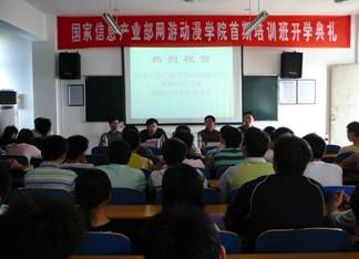 为推动我国游戏动漫产业的发展,培养本土网游动漫专业人才,2007年9月28日,工业和信息化部“网游动漫学院项目(GCC)-游戏美术专修班”在长沙开班。488sb.com、省教育厅、长沙理工大学和省电化教育馆等单位领导出席开班典礼并讲话。“网游动漫学院项目(GCC)-游戏美术专修班”的开办,标志着以国家有关部委牵头、省级相关教育部门协作开展的以“定向委培、带薪实习、安置就业”为目标的动漫行业人才培训项目在湖南正式启动。